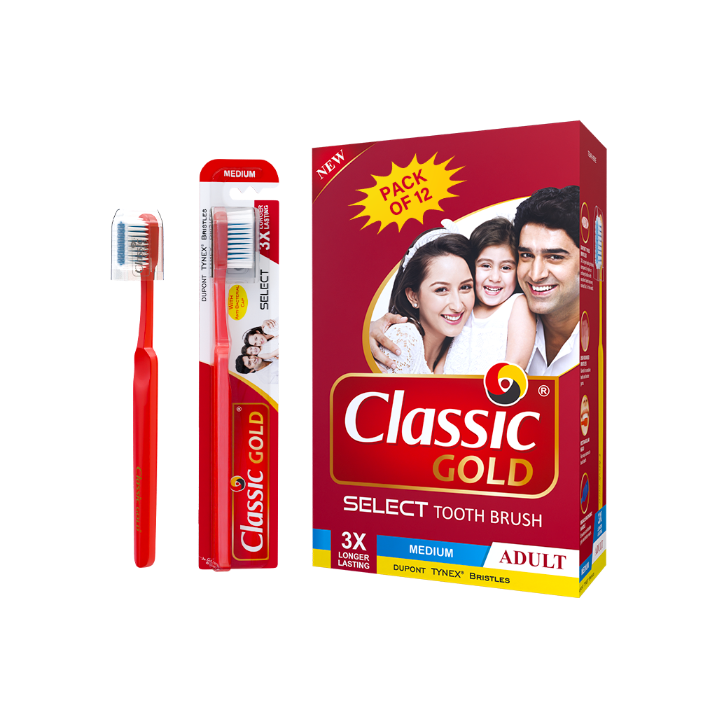 Select Medium Manual Toothbrush For Adults With Dupont Tynex Bristles And Anti Bacterial Crystal Clear Cap